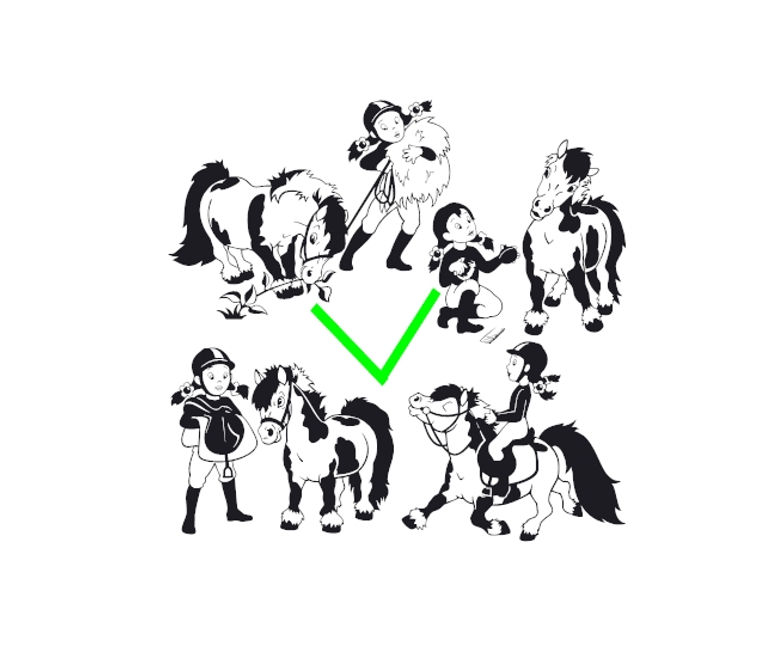 Pony' van weide halen, samen poetsen, opzadelen en dan gaan rijden.